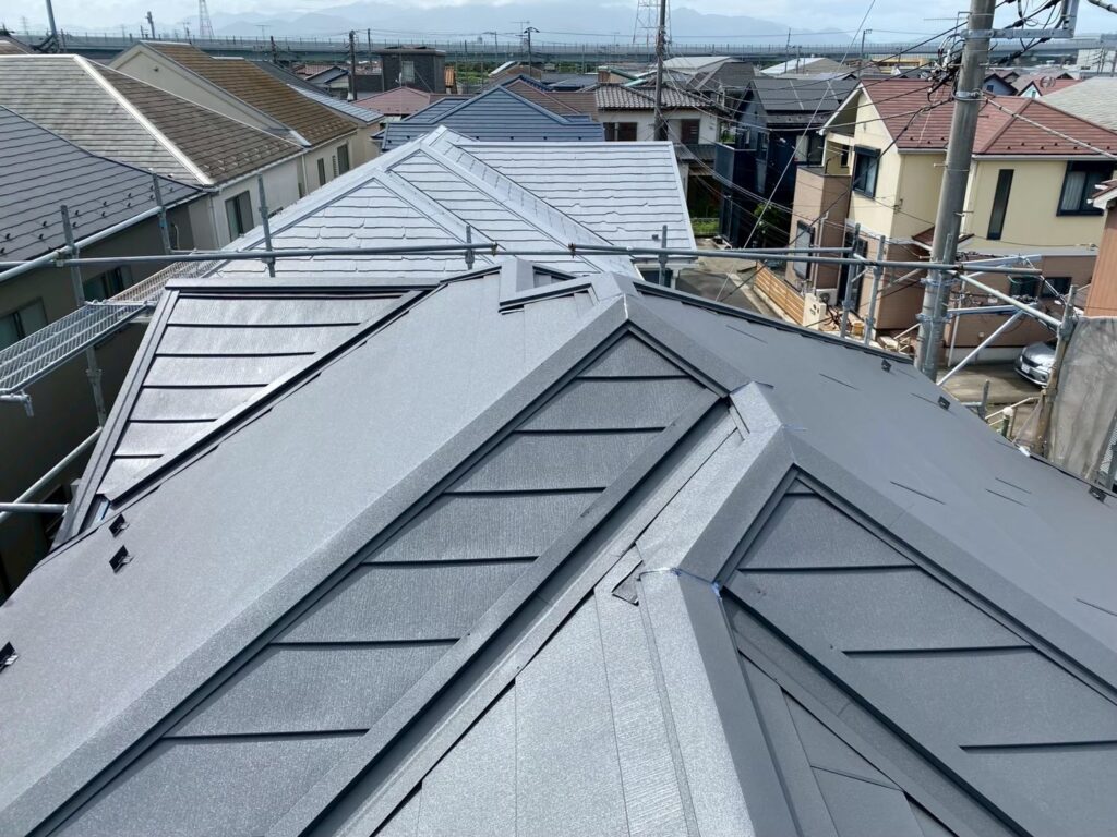 今回、屋根にコロニアルNEOと言う商品が使われていたので、クラックがひどくとても塗装できる状況ではなかった為、カバー工法を勧めさせていただきました。
