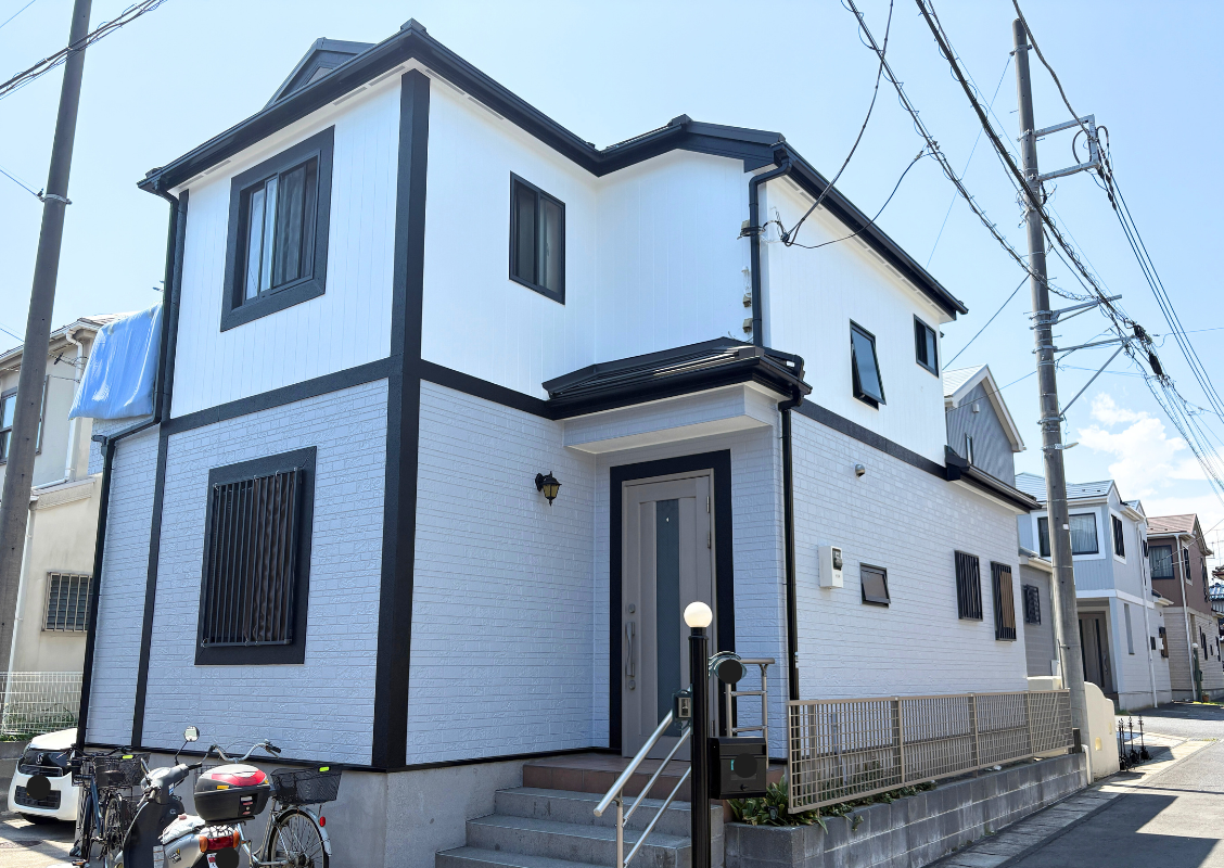 今回は、新築時のデザインを生かして、破風板と雨樋をブラックに変え建物全体を縁取ることでとてもまとまったデザインになりましたね。