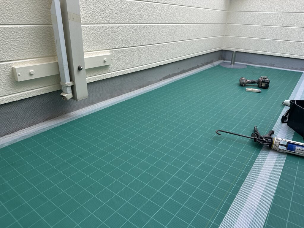こちらのお宅は以前の工事でウレタン防水の密着工法をされていたのですが、今回湿気により膨れてしまっている部分や切れてしまっていた為、今回は通気緩衝工法をすることになりました。