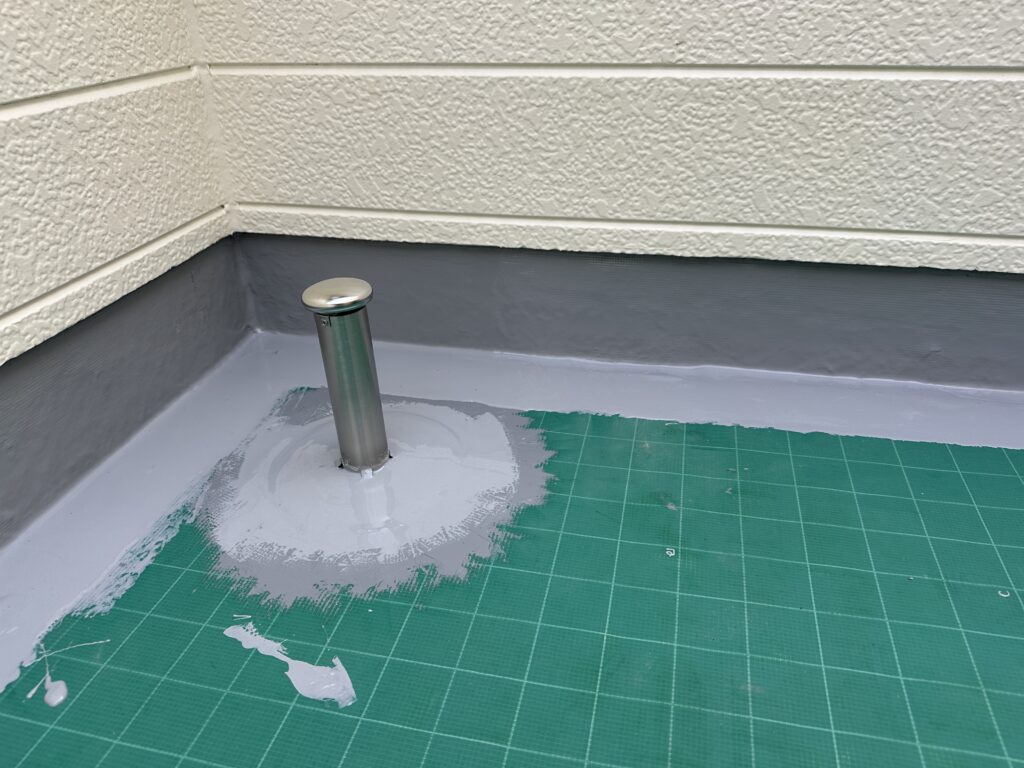 湿気を逃す為の煙突部分もしっかりと防水処理をします。