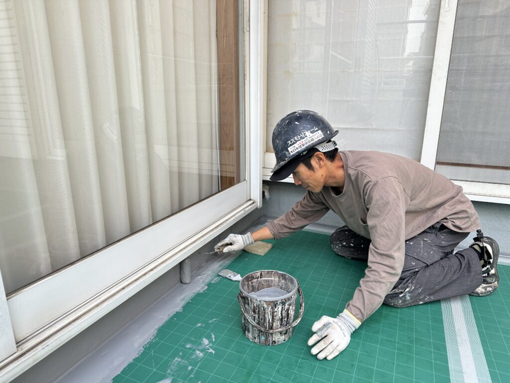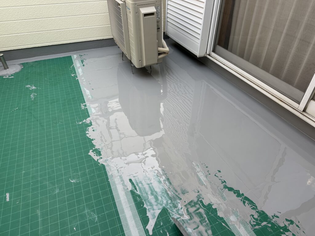 今週は現場作業メインの週になり、古民家の内装塗装や本日はベランダ防水作業を行ってきました。