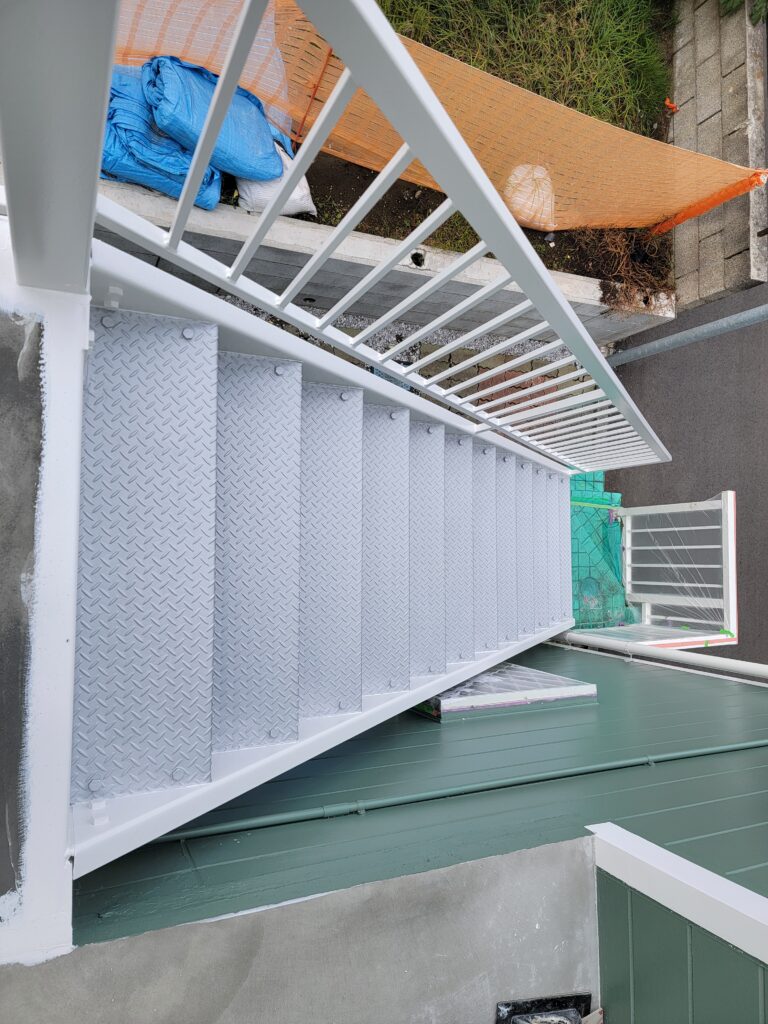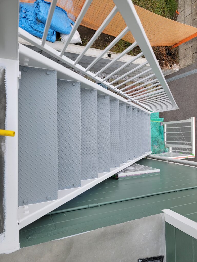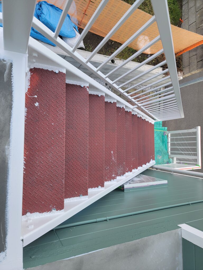 こちらが金属用塗料を塗装した状態です!今回は踏み板とささら(横の鉄骨)手すりは色を変えて塗装させていただきました!