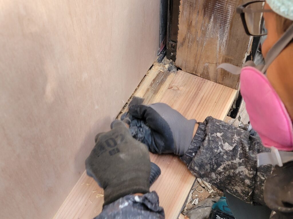 剥がしたら動かなくしていた原因の木部を交換します!微妙な段差等はノミで細かく調整していきます✨