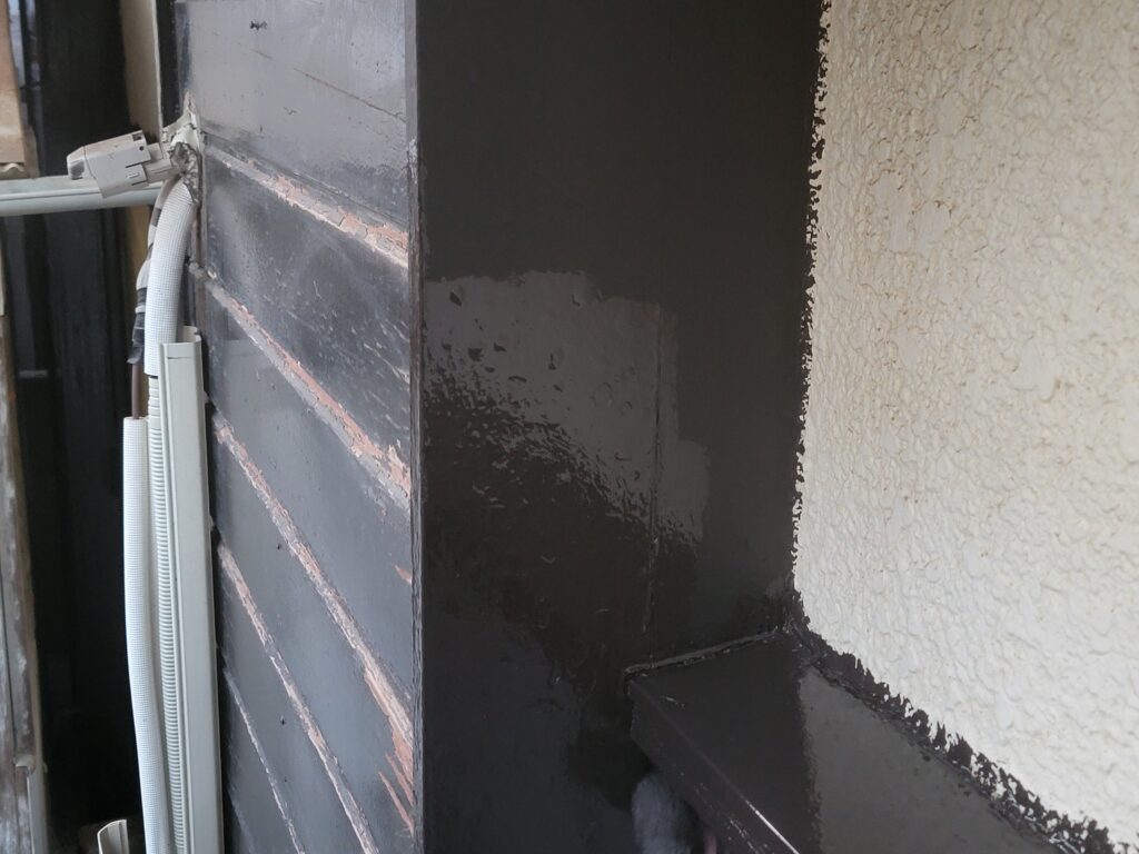 艶がない黒い部分が下塗り、刷毛のある茶色が中塗りになります!