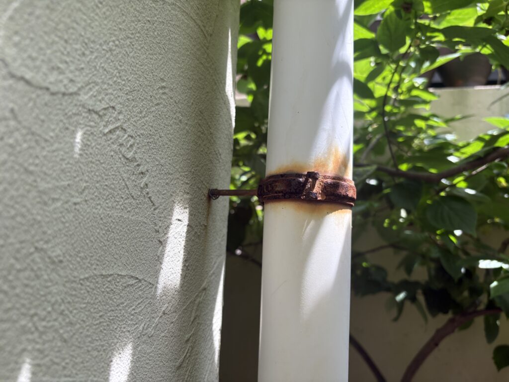 高圧洗浄機は外壁を傷める可能性があるため、やさしい水流で十分です。 - 金属部分の防錆対策