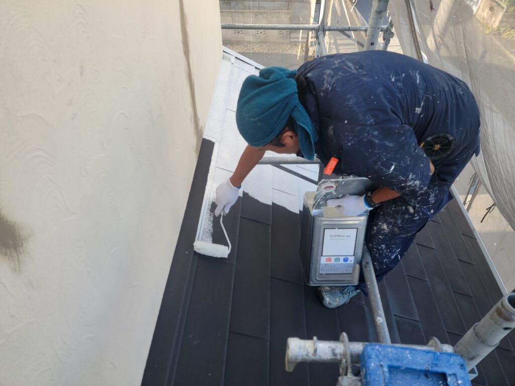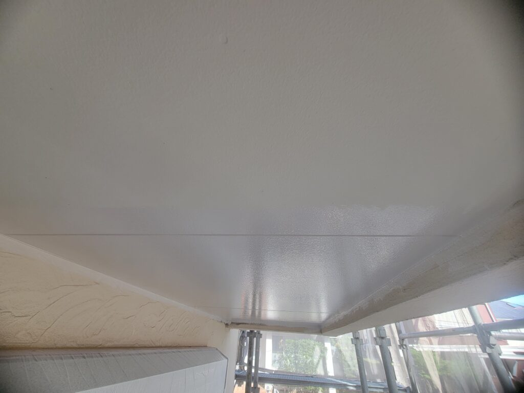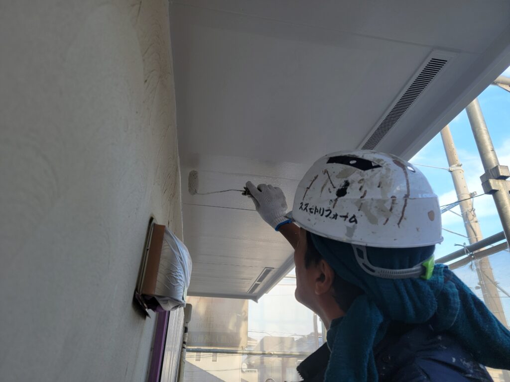 現場親方ブログ茅ヶ崎市緑ヶ丘T様邸 外壁塗装 軒天井塗装してきました!こんにちは!スズモトリフォームの酒井です。10/2は屋根下塗り、軒天井中、上塗りしてきました!屋根下塗り金属系の屋根なので錆止めを塗装していきます!軒天井塗装艶があるほうが塗装後になります!明日は破風下塗り、外壁下塗り進めていきます。無料お見積はこちら