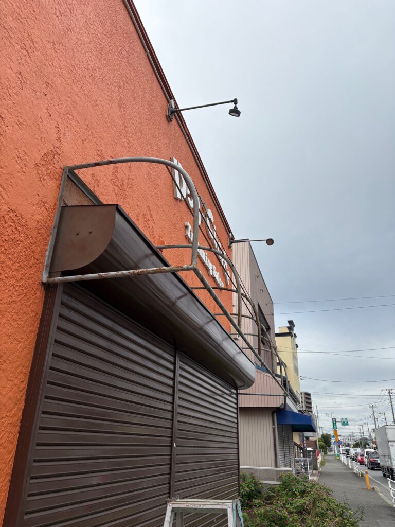 こうした店舗テントの張り替え・鉄部塗装・外装メンテナンスも承っています。