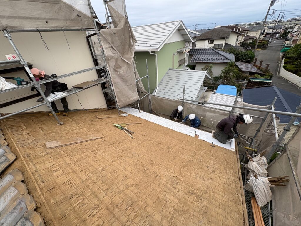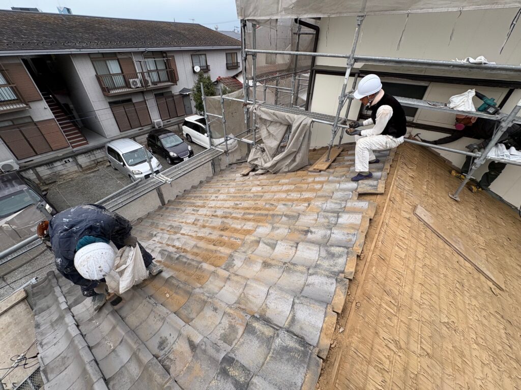 瓦を一枚一枚丁寧に下ろしていく作業は、見た目以上に重労働。