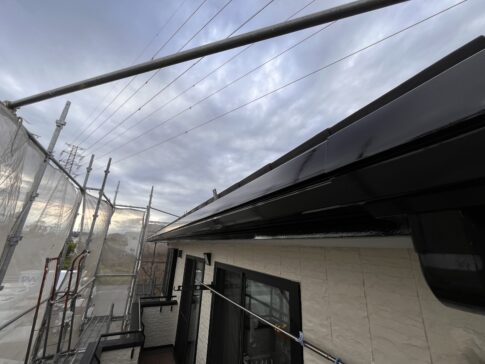 その他こんにちは!スズモトリフォームの酒井です! 4/18の作業になります! 樋、破風中塗り ローラーの後、刷毛を通すだけで仕上がに差がでます。5分艶の材料なのでしっとりとした仕上がです!