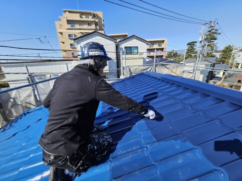 現場親方ブログこんにちは!スズモトリフォームの杉浦です。 2月22日本日の作業風景です。 屋根上塗り ベランダ防水トップコート していきます!!本日で塗り物が終了し残りがウッドデッキのオイルステイン