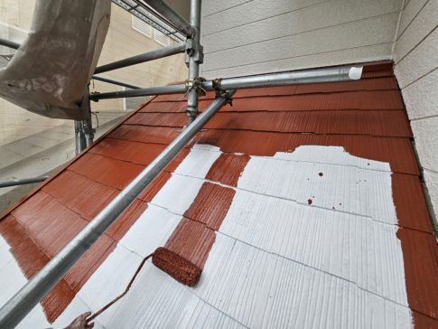 現場親方ブログこんにちは。スズモトリフォームの渡辺です。 10月17日の作業内容になります! 本日は引き続き屋根の中塗りをして養生をしてきましたのでその様子を上げていきます! 本日は養生の途中で終了となりましたので 明日も引き続き養...