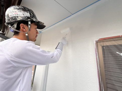 現場親方ブログこんにちは。スズモトリフォームの渡辺です。 10月18日の作業内容になります! 本日は昨日に引き続き養生を終わらせてから軒天の中塗りと上塗りをしてきましたのでその様子を上げていきます! 軒天塗装 本日は天候が悪く、1部養...