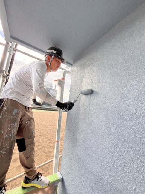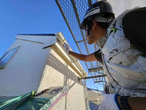 こんにちは!スズモトリフォームの杉浦です!9/25本日の作業風景 付帯部上塗り 本日で塗りが終了して、明日からタッチアップ復旧作業の方進めていきます!