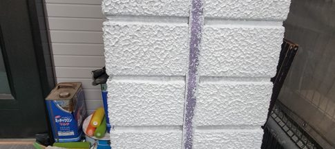 現場親方ブログこんにちは!スズモトリフォームの酒井です! 7/29日の作業は外壁の補修になります! コーナーの隙間埋め パテ補修 模様付け(マスチック) 明日は色をいれていきます!