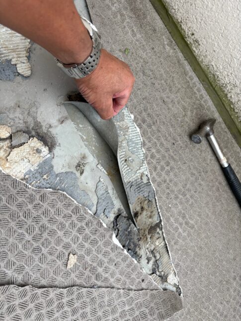 会長親方-鈴木洋一ブログ人を育てる、街を支える。スズモト会長・鈴木です。 階段踊り場の膨れ補修と鉄部塗装工事を行いました。 下地を完全に撤去し不陸調整を行いました。 破損部も整形処理し防水性能が悪いので、塩ビシートを貼る前に一次シールも打ってあ...