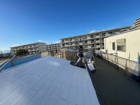 会長親方-鈴木洋一ブログ細心の注意をして塗るのですが近隣の車などに飛散防止用の養生を掛けさせてもらっています。いつもありがとうございます。 本日は寒いですが天気も良く塗装日和ですね、この作業はコロニアル屋根の下塗り(超対抗浸透プライマー エタニ...