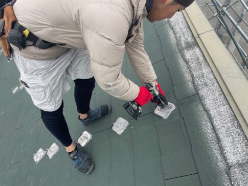 茅ヶ崎市中島J様邸 皆で屋根材の荷下ろし